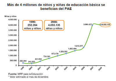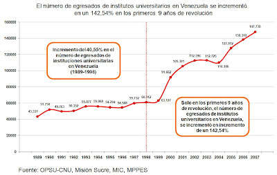 À uns anos por exemplo, li uma notícia da imprensa venezuelana, que dizia que metade da população venezuelana estava a estudar naquele momento em algum nível educativo.